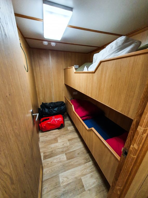 - There are six twin berth cabins either side of a heated, central corridor.
