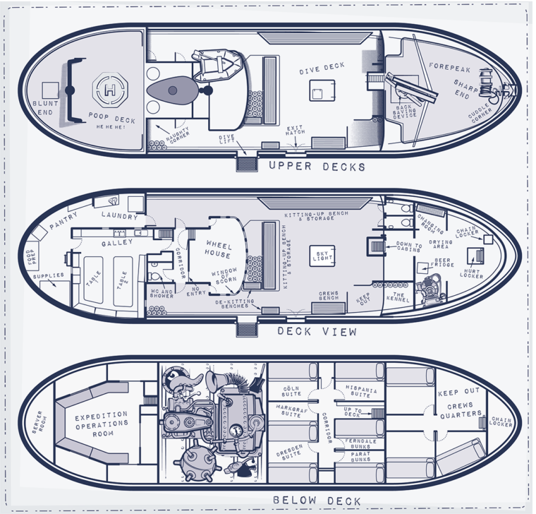 Under the whaleback at the front of the boat is a drysuit changing and drying area. There is plenty of storage for camera gear and the other myriad of stuff that needs bringing on any serious dive expedition. But most of all, changing can be done out of the weather and in the warm.